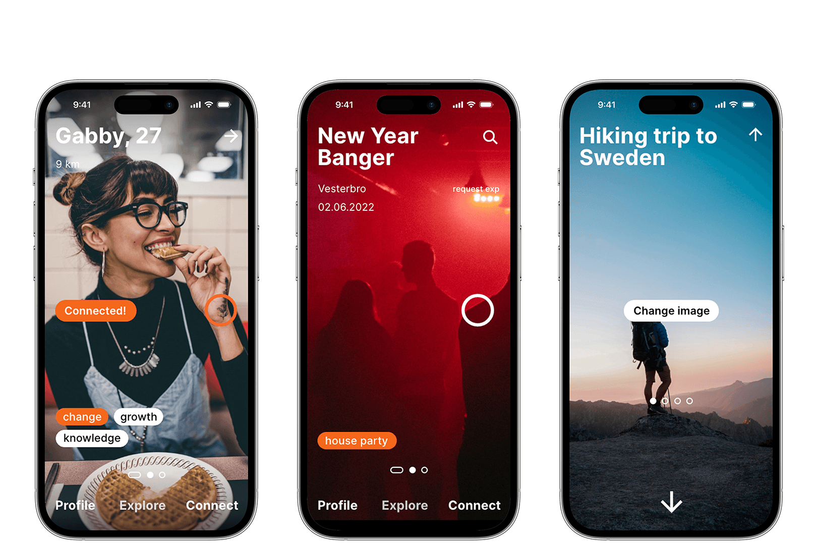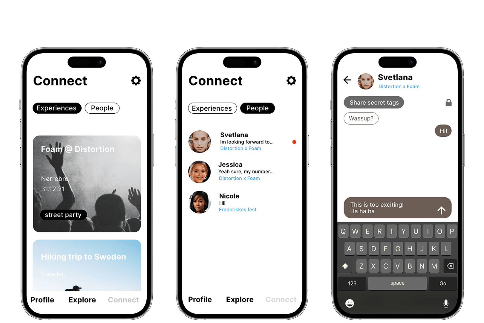 Visual brand identity and app design and for the startup Foam - an app for social events and communities